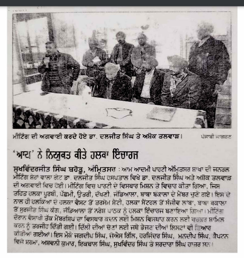 Following the footsteps of Sh Arvind Kejriwal and S.Bhagwant Mann he has worked rigrously for the party at the grass root level in area of khadoor sahib punjab .Known as the man of focus, commitment and sheer will he has helped many candidates in election campaigns